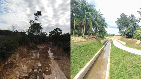 3月17日,由水電基礎局承建的海南省瓊海市水利設施災后水毀重建工程通過竣工驗收。這一重要民生工程的完工,標志著瓊海市在經歷去年超強臺風“摩羯”及強降雨沖擊后,其水利基礎設施實現全面恢復與功能升級,為當地群眾筑起一道堅實的水安全防線。 受去年第11號超強臺風“摩羯”帶來的強降雨影響,瓊海市多處水利設施損毀嚴重,直接威脅到沿線群眾的生命財產安全和農業生產。面對災情,水電基礎局迅速響應,積極踐行央企責任,承攬了該災后重建項目。工程重點聚焦瓊海主城區及大路鎮、萬泉鎮、博鰲鎮等受災嚴重區域,對17處水毀點位開展系統性重建與功能提升。 建設過程中,項目團隊科學組織、精細施工,累計新建機耕橋2座、節制閘5座、砂濾集水井1座,澆筑混凝土擋墻2681.81立方米,完成河道清淤疏浚2429立方米。面對工期緊、任務重、點多面廣的挑戰,項目部嚴格遵循行業建設標準,統籌兼顧施工安全、工程質量、建設進度與生態環保,確保各項施工任務的高效落地。 工程建成投用后,不僅全面恢復并優化了水毀設施的原有效率,更有效消除汛期潰堤、河水漫溢等潛在安全隱患。沿線5個鄉鎮、16.2萬群眾的防洪安全感顯著增強,農業灌溉用水得到穩定保障,生產生活條件得到切實改善。 施工前后對比 |